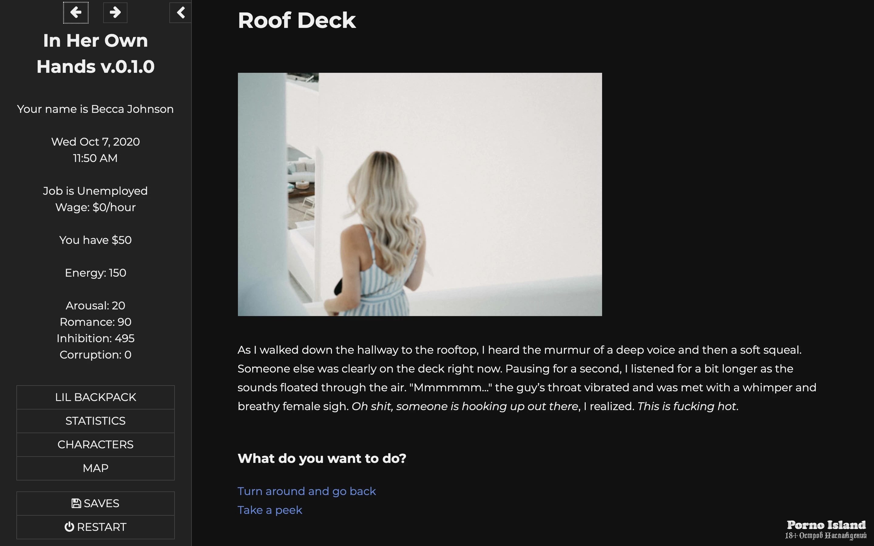 Added ability to respond to Cassidy's sexy selfies with your own sexy selfie: select one of three options, chosen selfie will appear in phone gallery