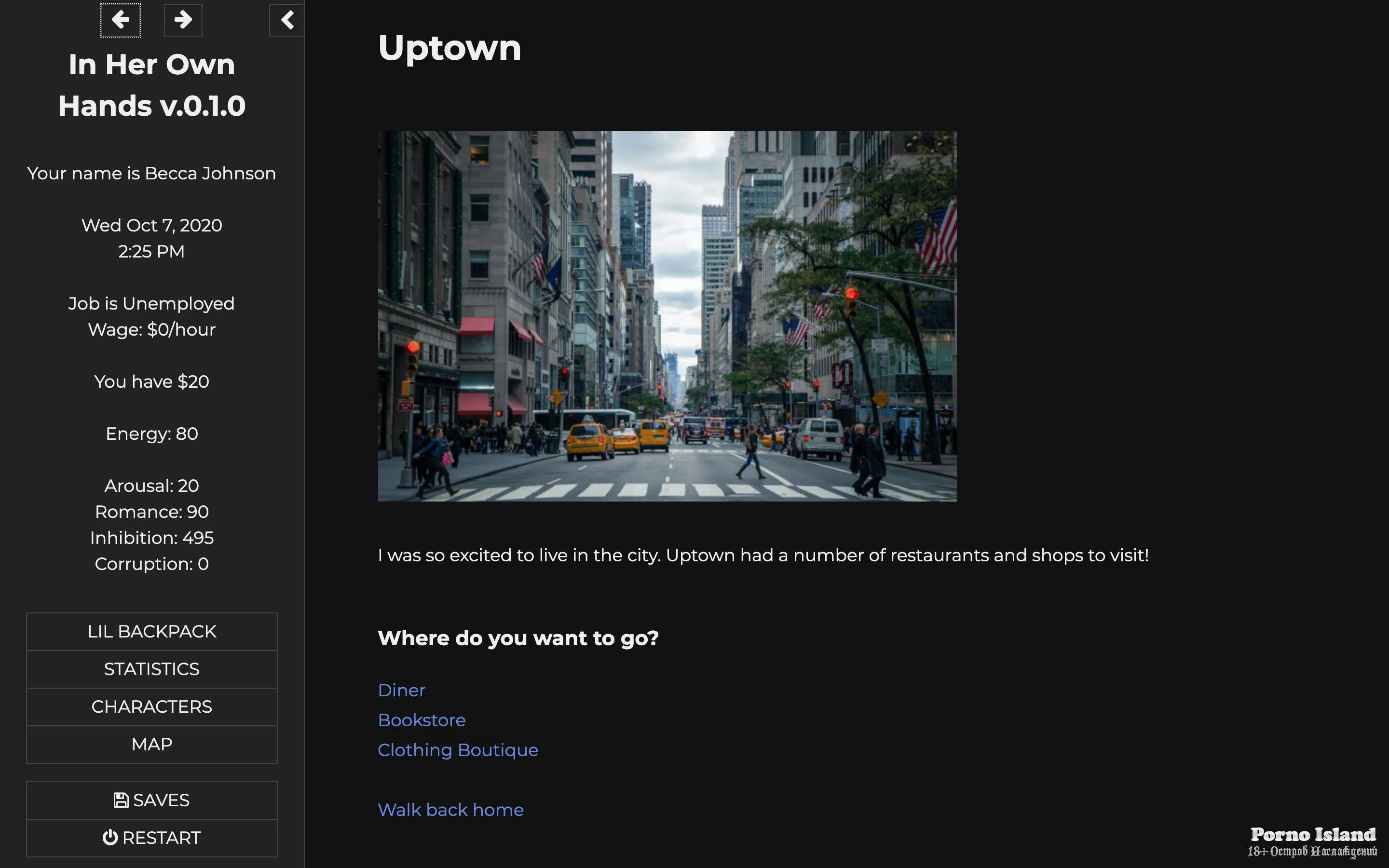 Random events/new locations exploring the city