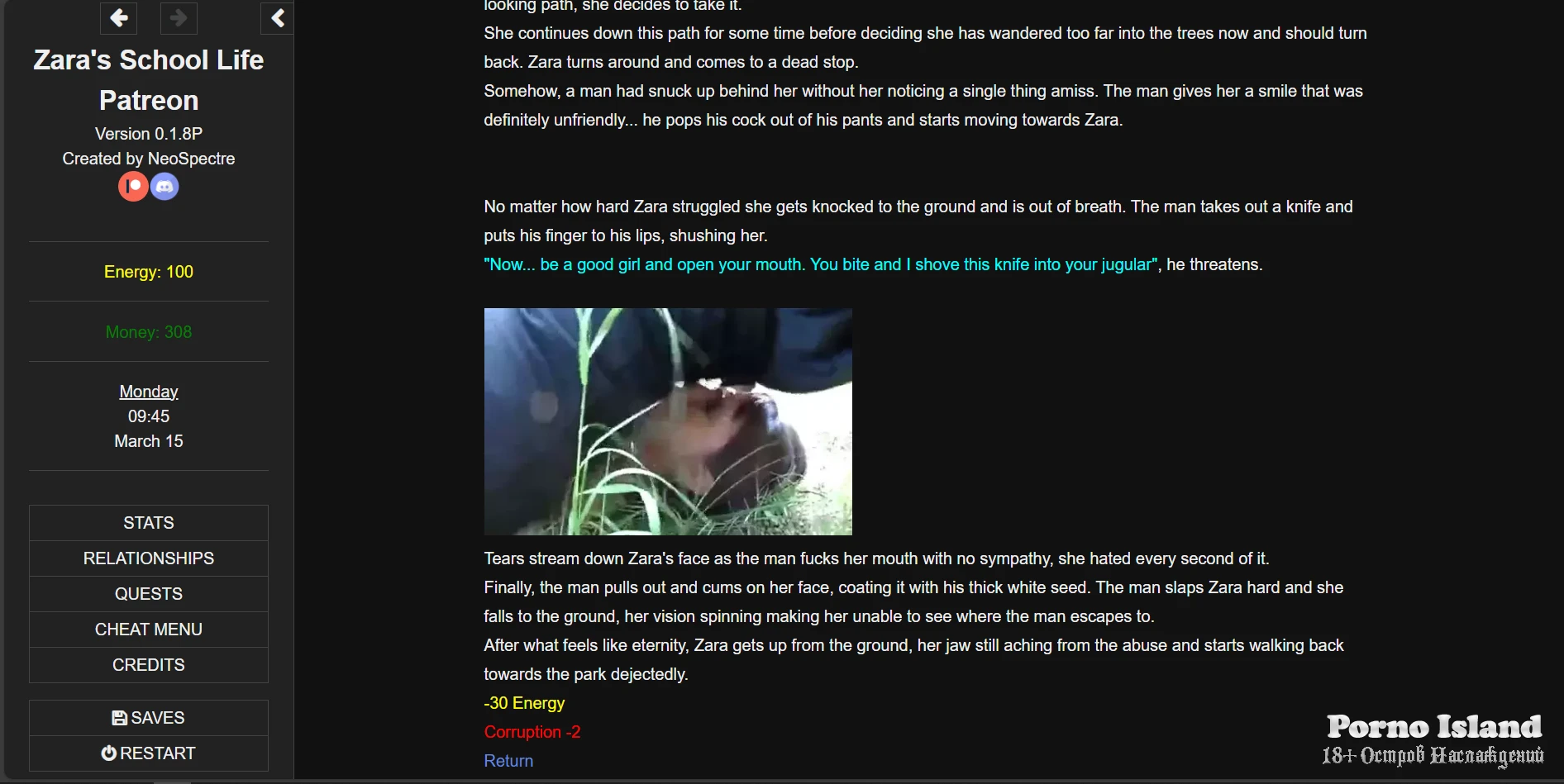 -Improved the writing of 1 facefuck into throatpie scene, 1 rough fucking scene and 1 rough anal fucking into an anal creampie scene (made dad a lot more dominant and angrier) in "PunishedEvent School" when missed a certain amount of classes in a week