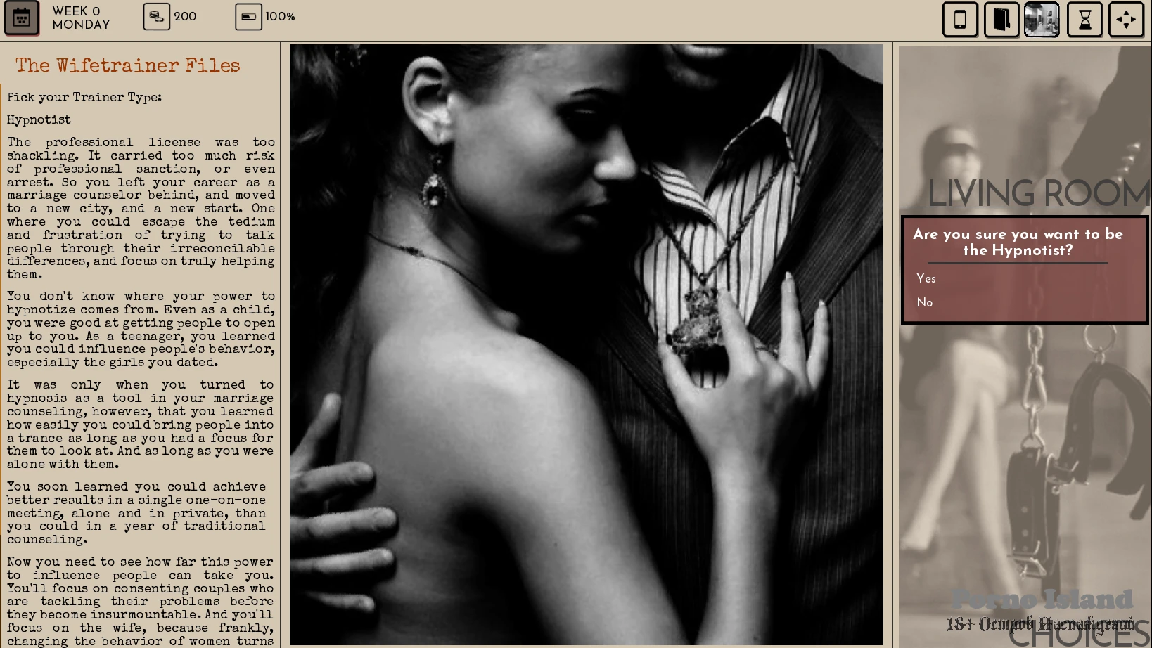 • Added notification when a client or former client is under the influence of a love potion and improved consistency for how it and the trigger implanted notification is displayed after examining the character or reviewing their file or relationship status