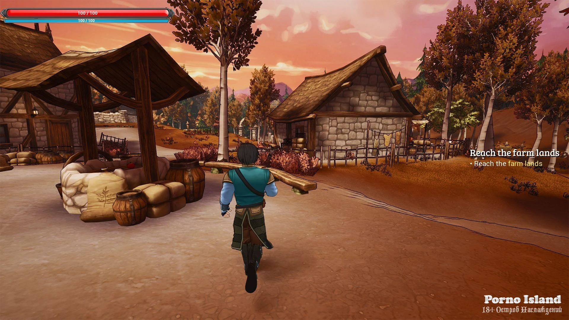 – Main Menu – We gave the main menu of the game a new background – a pretty landscape of the village. As well as a bit more cinematic fly-through intro to the beginning of the game.