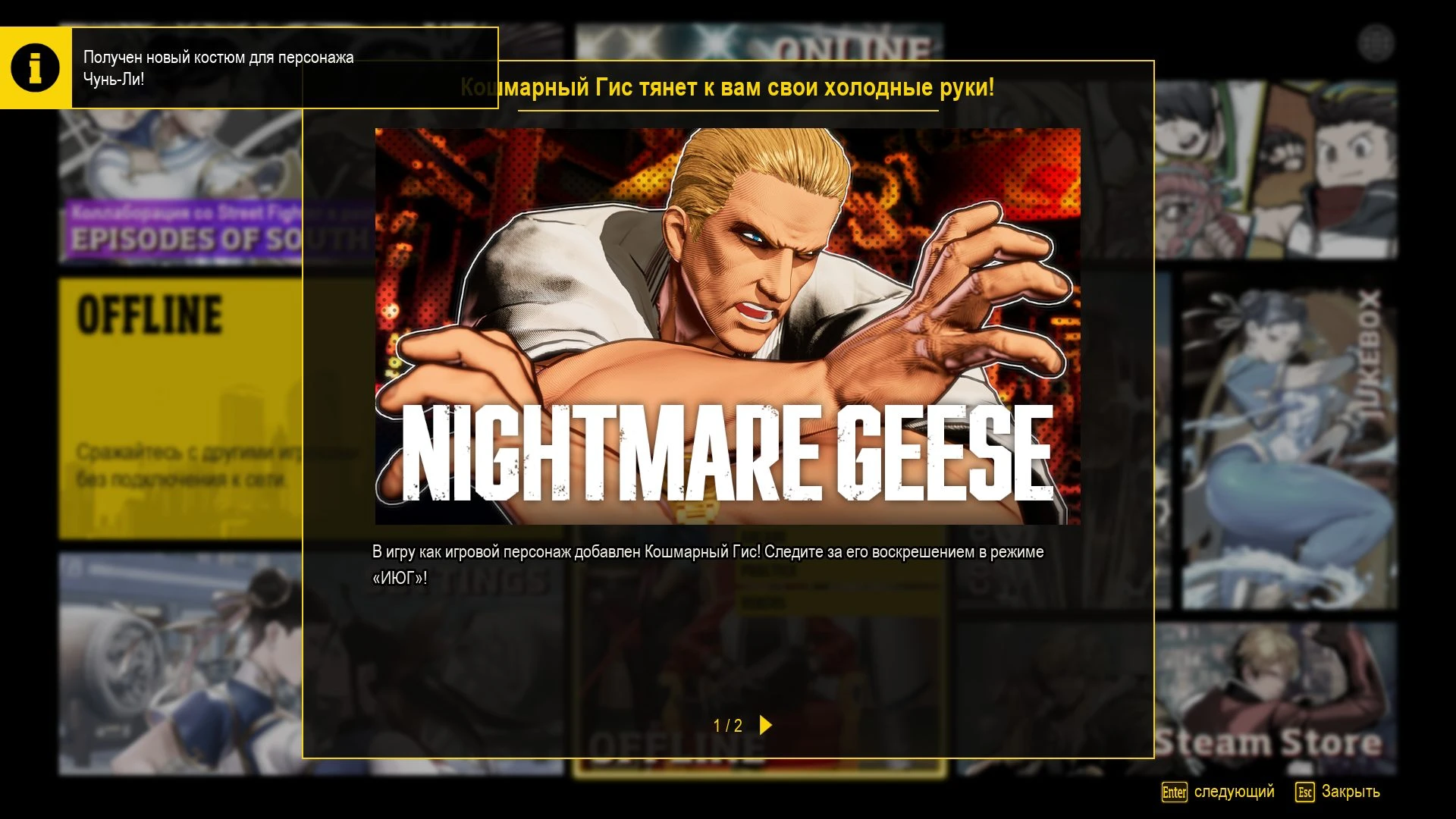 ✧ Сражайтесь за превосходство в «ИСТОРИЯХ ЮЖНОГО ГОРОДА» - ролевом режиме для одного игрока! - Представляем вам «Эпизоды Южного города» (EOST) - одиночное ролевое приключение, в котором вам предстоит сражаться с соперниками в различных условиях, получая XP и другие награды за свои усилия. Повышайте уровень своего бойца, развивайте разнообразные навыки и побеждайте соперников на своем пути к вершине. В Южном городе бушуют мечты и амбиции; настало время побороться за корону города и создать собственную легенду!