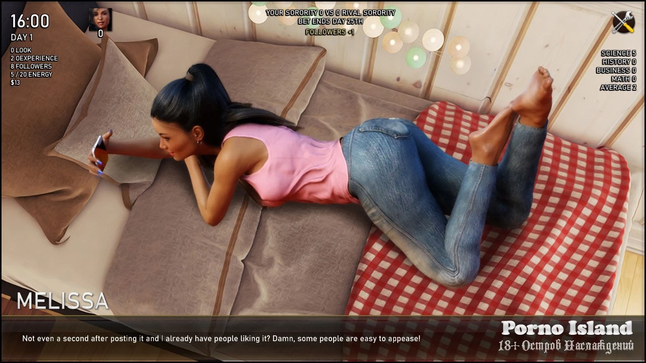 "PLEDGE" - это симулятор отношений, в котором вы управляете своим временем, чтобы не только повысить свои личные показатели, но и взаимодействовать с другими персонажами. У вас есть 30 дней на достижение ваших целей, и только от вас зависит, какой путь вы выберете. Например, вы можете сосредоточиться на своем милом парне и проводить с ним все свое время, получая доступ к пикантному общению, или... попробовать найти что-то новое и пообщаться со своей соседкой по комнате, чтобы проверить, нравятся ли вам девушки. Но это только начало. PLEDGE is a relationship simulator where you manage your time in order to not only boost your personal stats but also interact with other characters. You got 30 days to achieve your goals and it's up to you which path you'll choose. For instance, you may focus on your sweet boyfriend and spend all your time with him, getting access to spicy interactions with him or... try to discover something different and hang out with your female roommate and test if you're into girls. But that's only a beginning. Год выпуска: 2020 Жанр: 3dcg, anal, animated, bdsm, big ass, big tits, bukkake, cheating, exhibitionism, female domination, female protagonist, groping, group, handjob, interracial, lesbian, male domination, masturbation, multiple penetration, romance, sex toys, spanking, voyeurism, vaginal, Цензура: Отсутствует Разработчик/Издатель: Lesson of Passion/LOP Gold - lessonofpassion.com/ Платформа: PC/Windows Тип издания: Completed Таблетка: Не требуется Версия: Final Язык игры: Английский Язык интерфейса: Английский