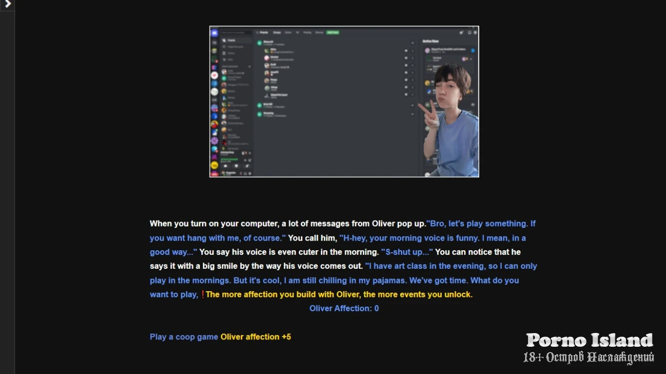 Codes to redeem : If you finished Oliver’s first route, you can find a code on the computer in the morning when talking with him and use it in the journal in the bedroom (works only once for save, recommended to use when starting a new save to try another route)