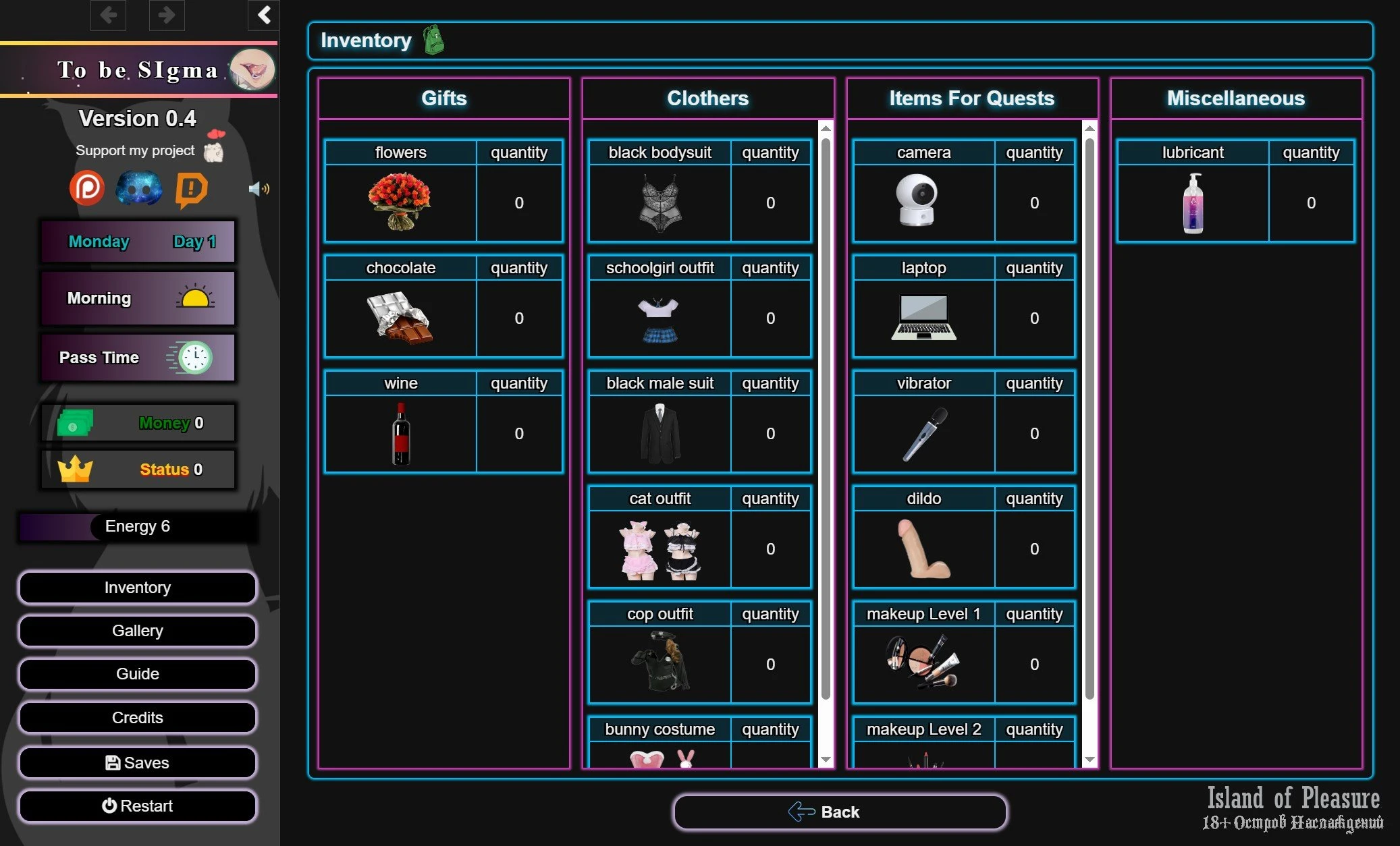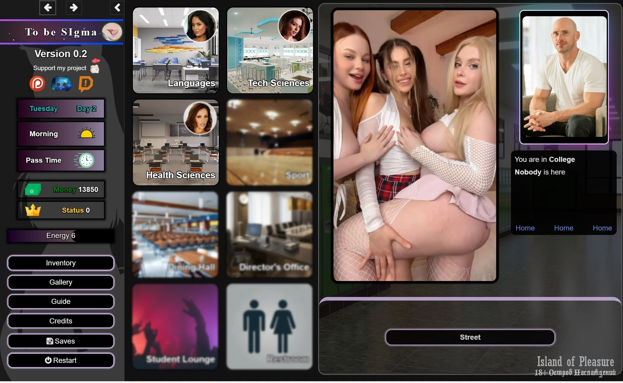 Gym Improvements: You can now improve your energy and arousal stats at the gym