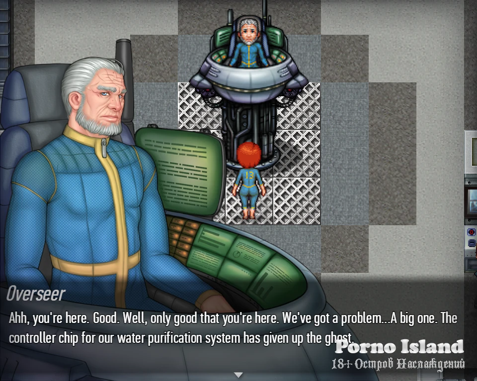 In Vault 13, the spanking event was graphically updated, and the storyline of the "Grumpy Old Man" character was continued with new events. We plan to add similar story events for other special characters in the game.