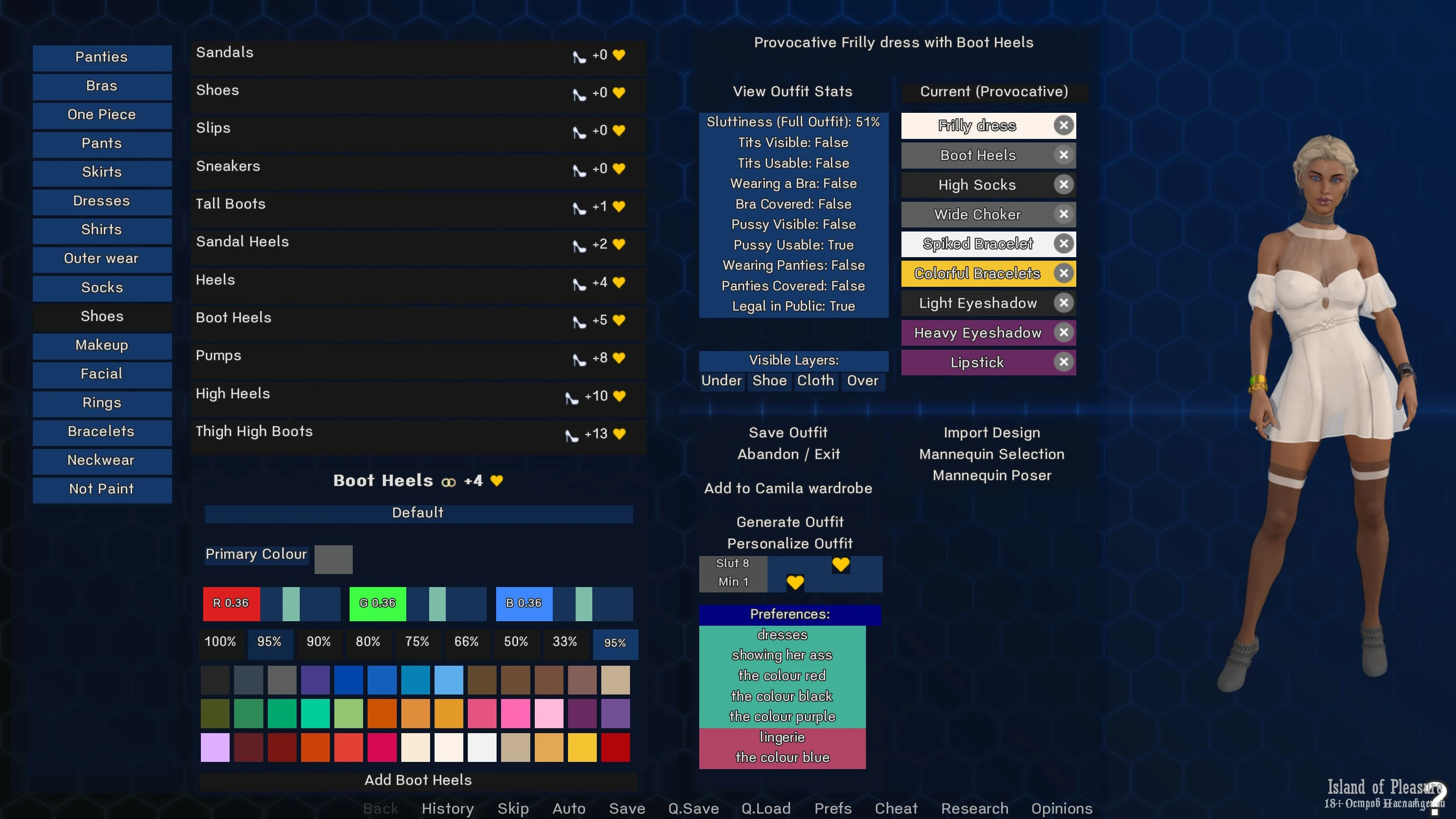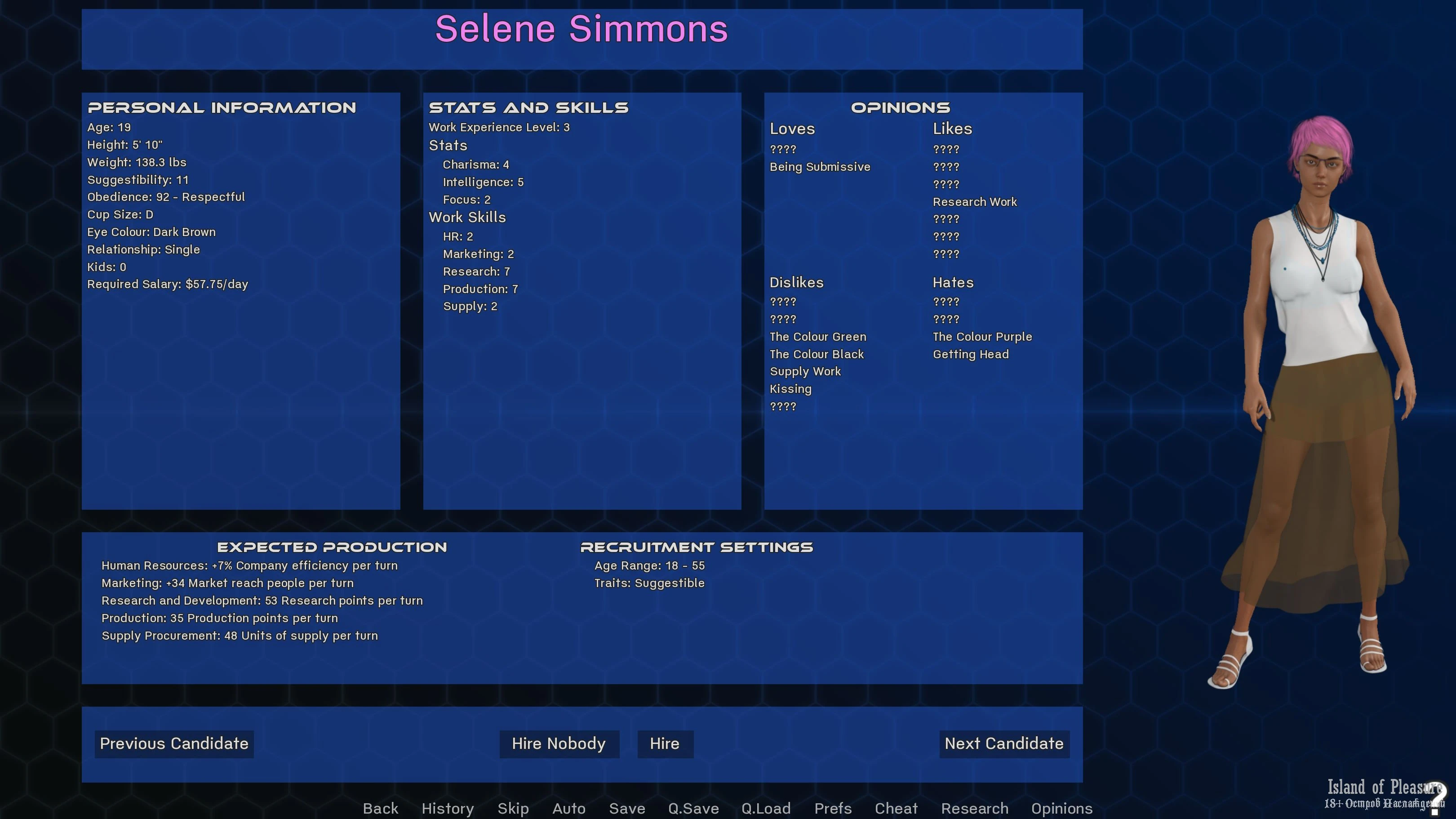 Settings UI to influence the random generator for (body type / breast size / hair style / skin color)
