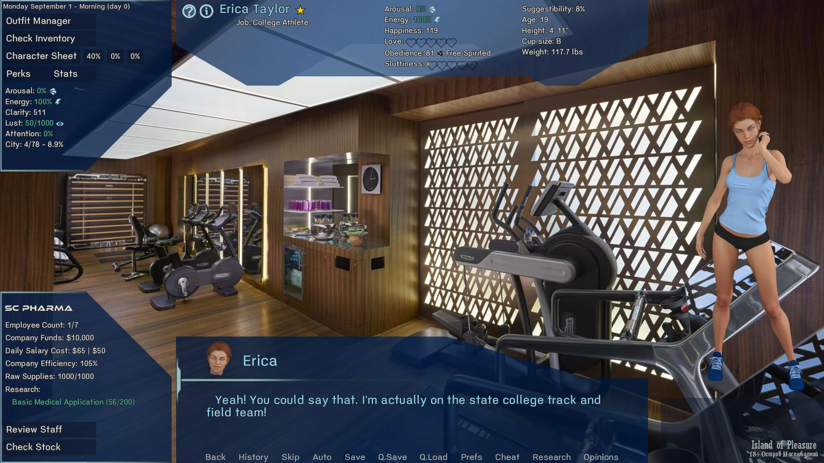 College athlete Erica storyline with yoga classes