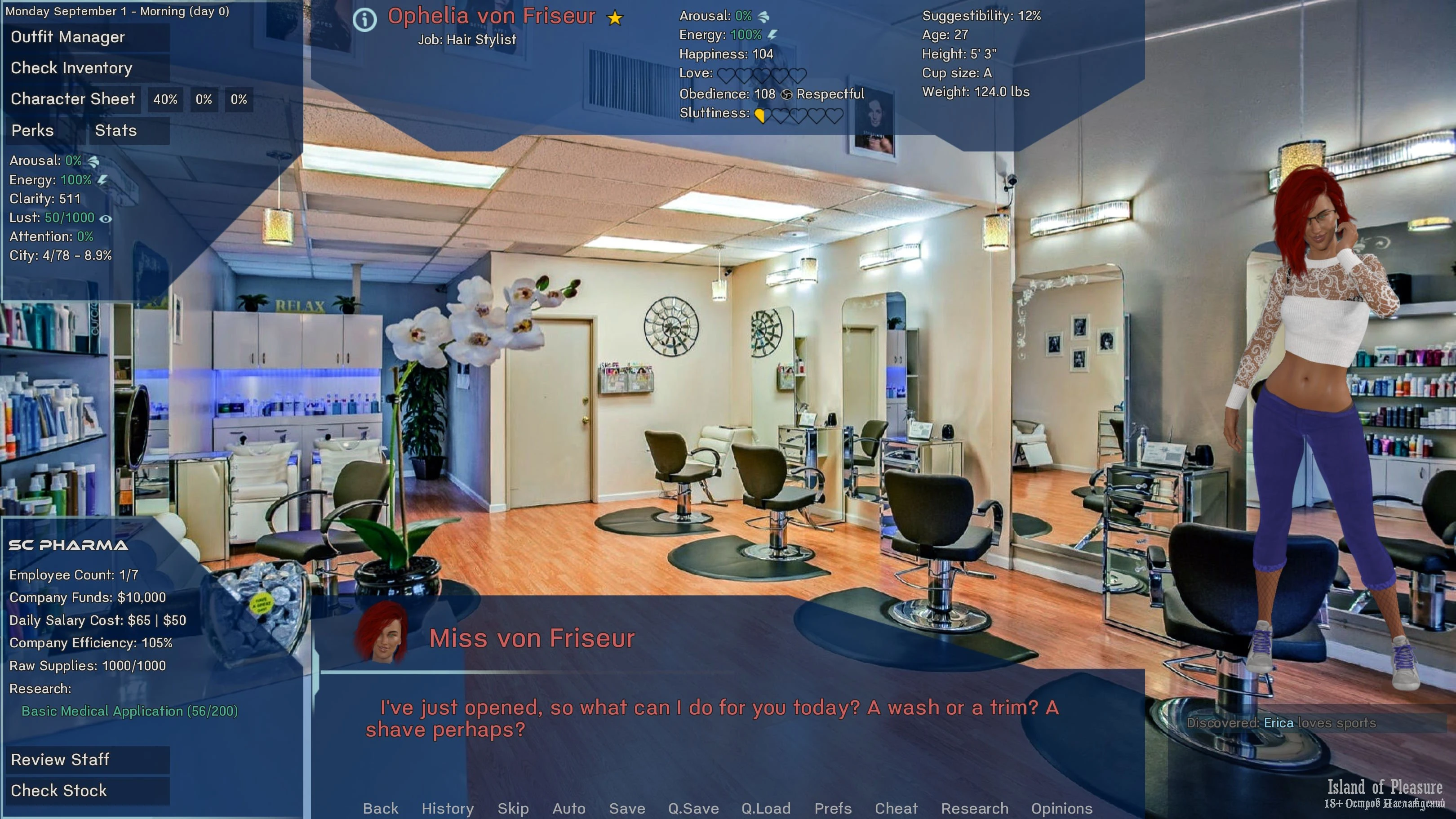 Adds 5 Side Quests (Essential Oils, Arousal Serum, Breeding, Cure Discovery, Chemists Daughter)