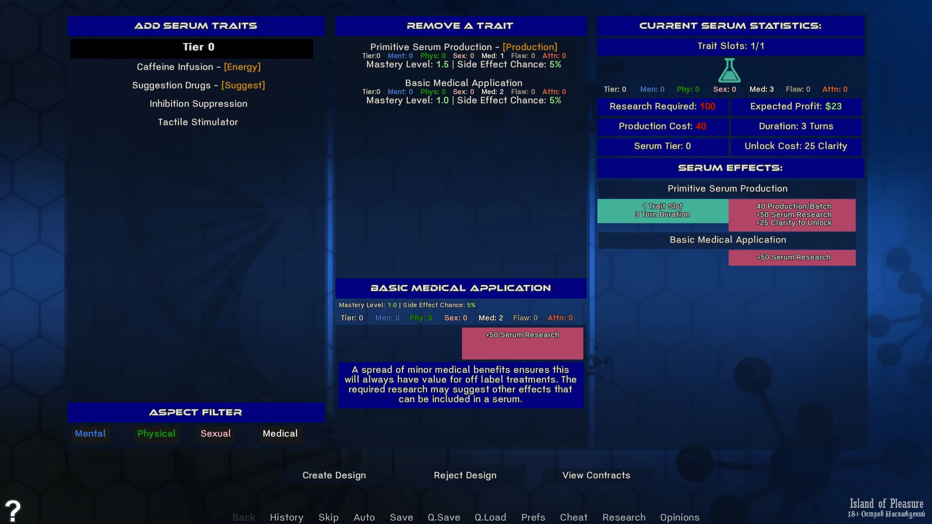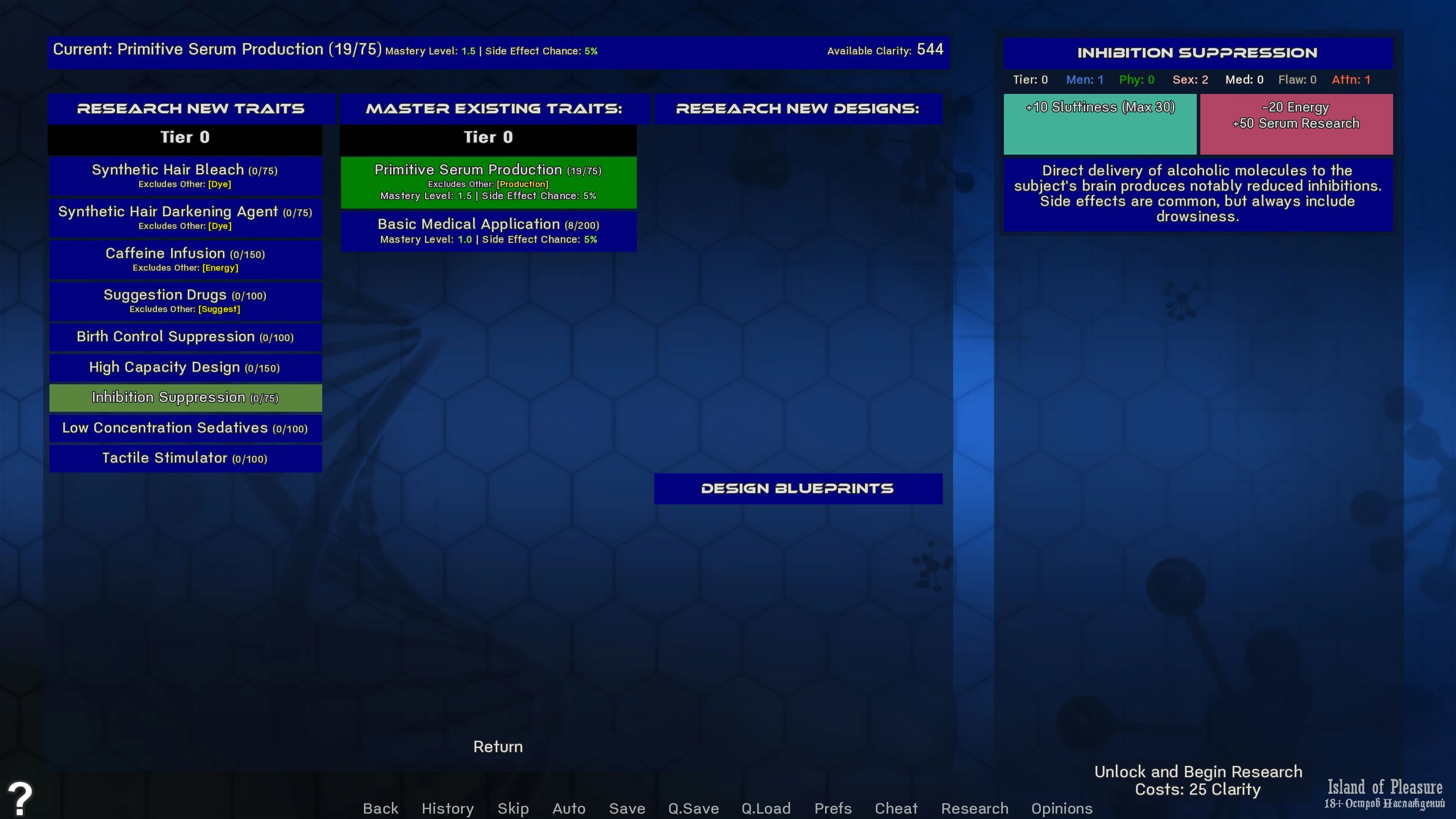 Traits and Serums Research Cheat (press 't' in game)