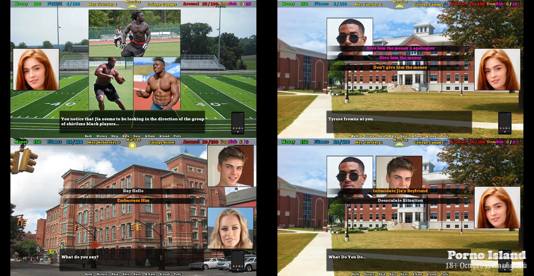 Scene 92: Tyrone shows you he’s taken over the frat and forces you to watch and be humiliated in front of the three college girls. Changelog v0.6 - 2024-02-01