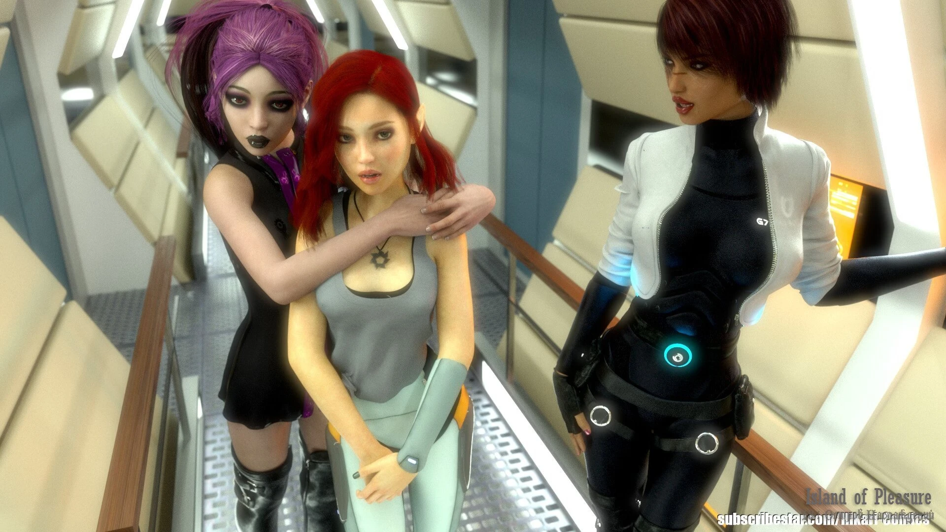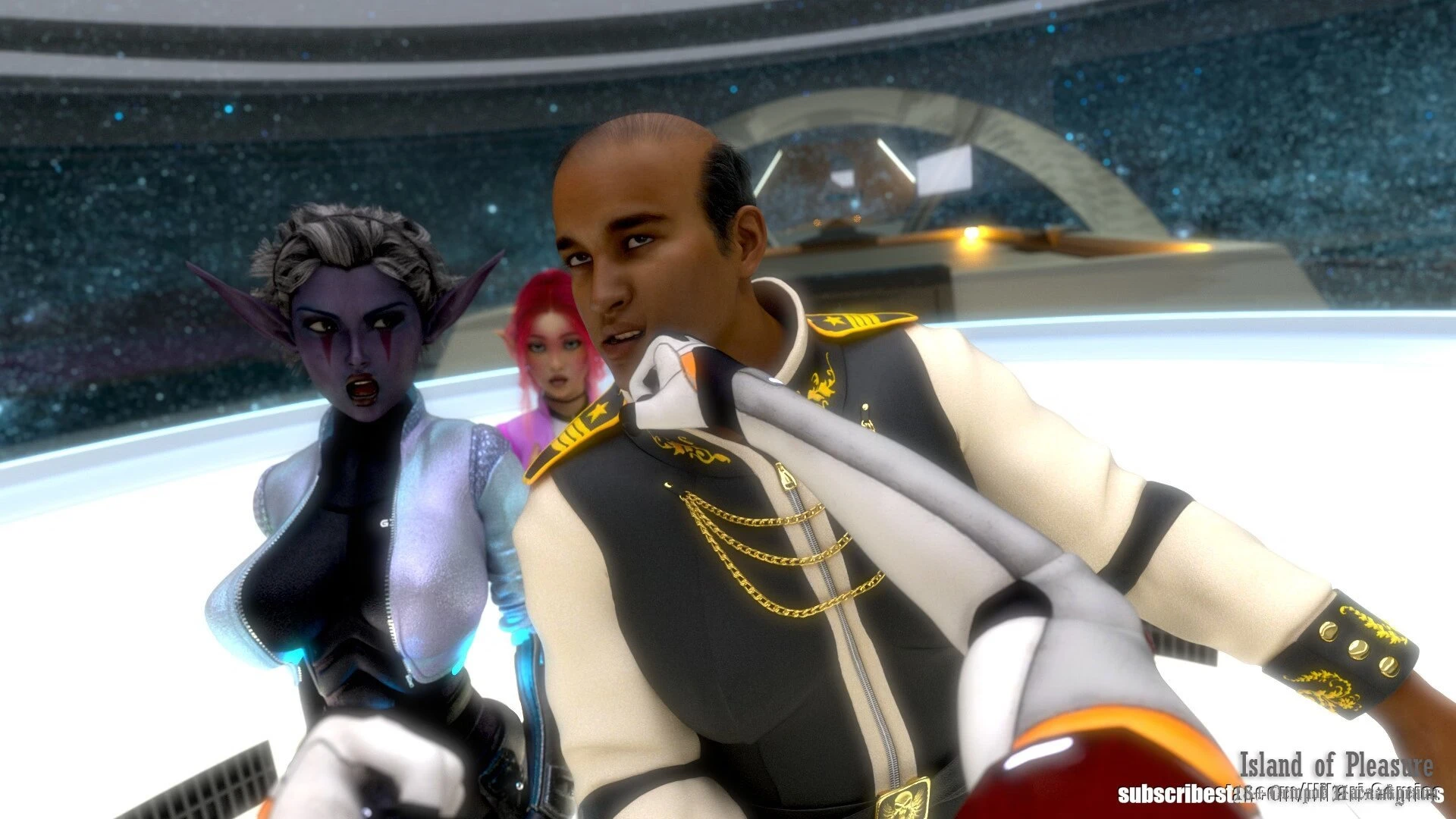 This is a Harem Visual Novel with strong NTR mechanics set on a disabled intergalactic ferry.