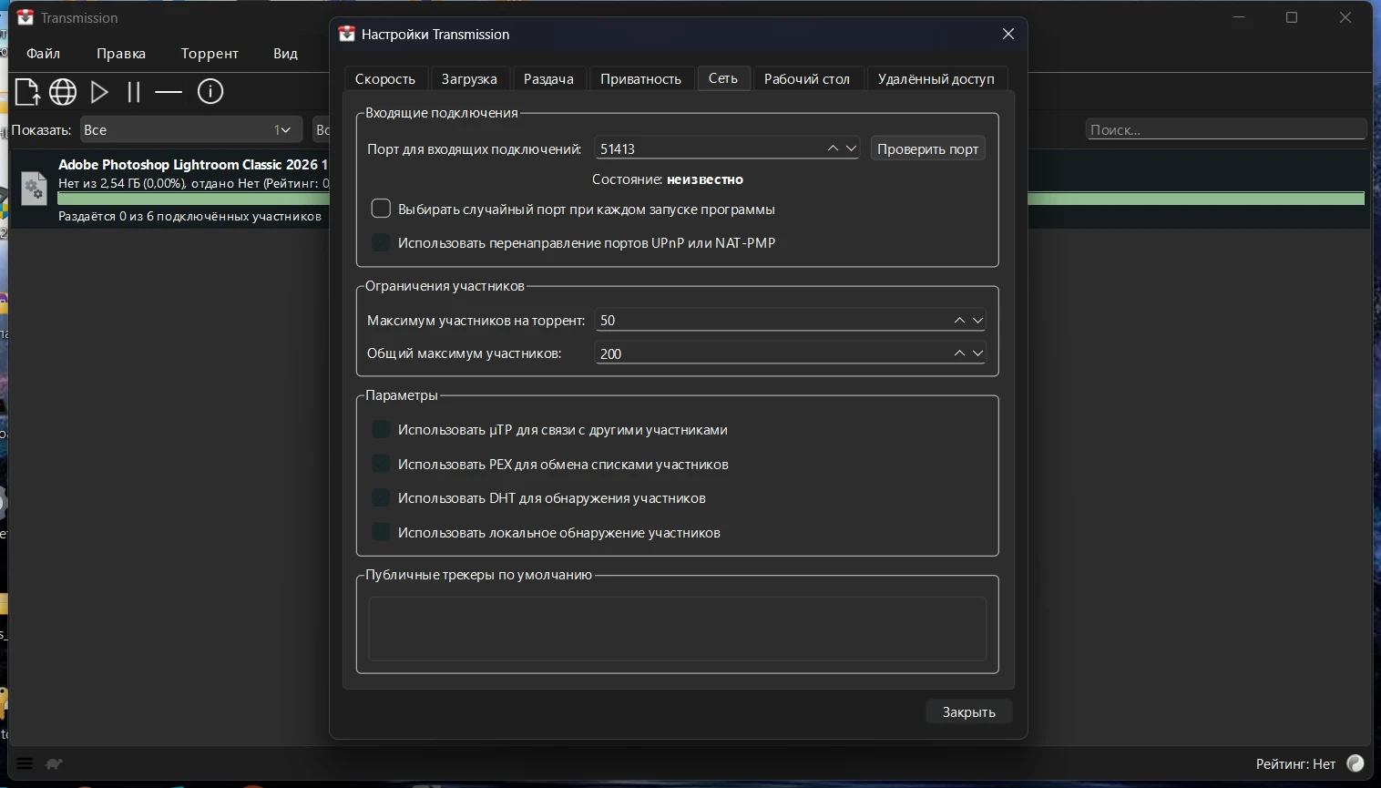 Опции DHT, PEX и LPD