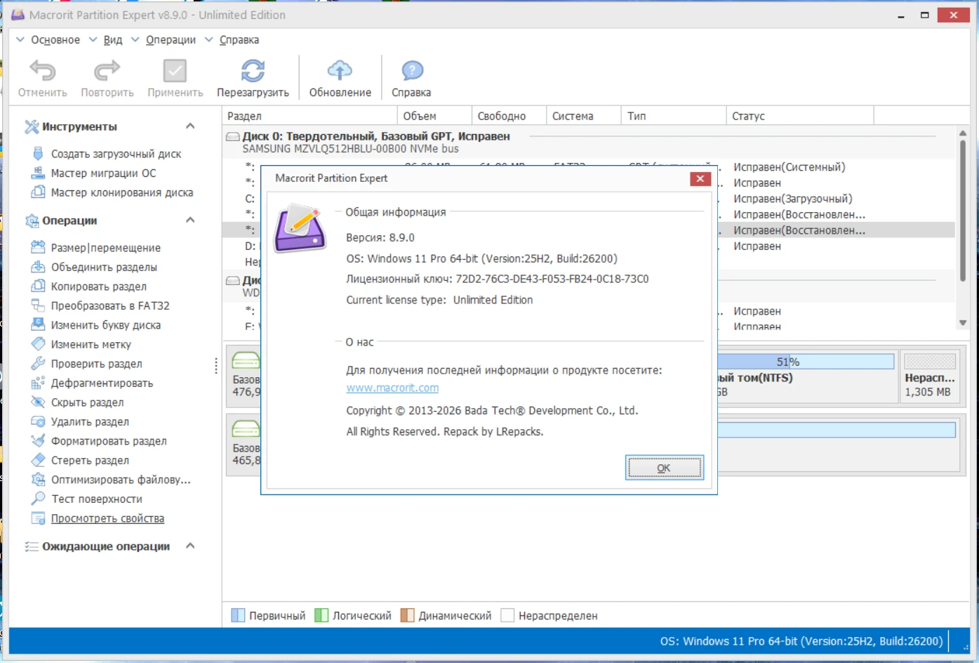 Macrorit Partition Expert предоставляет мощные функции по работе с разделами жесткого диска, которые