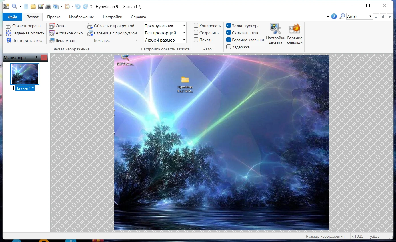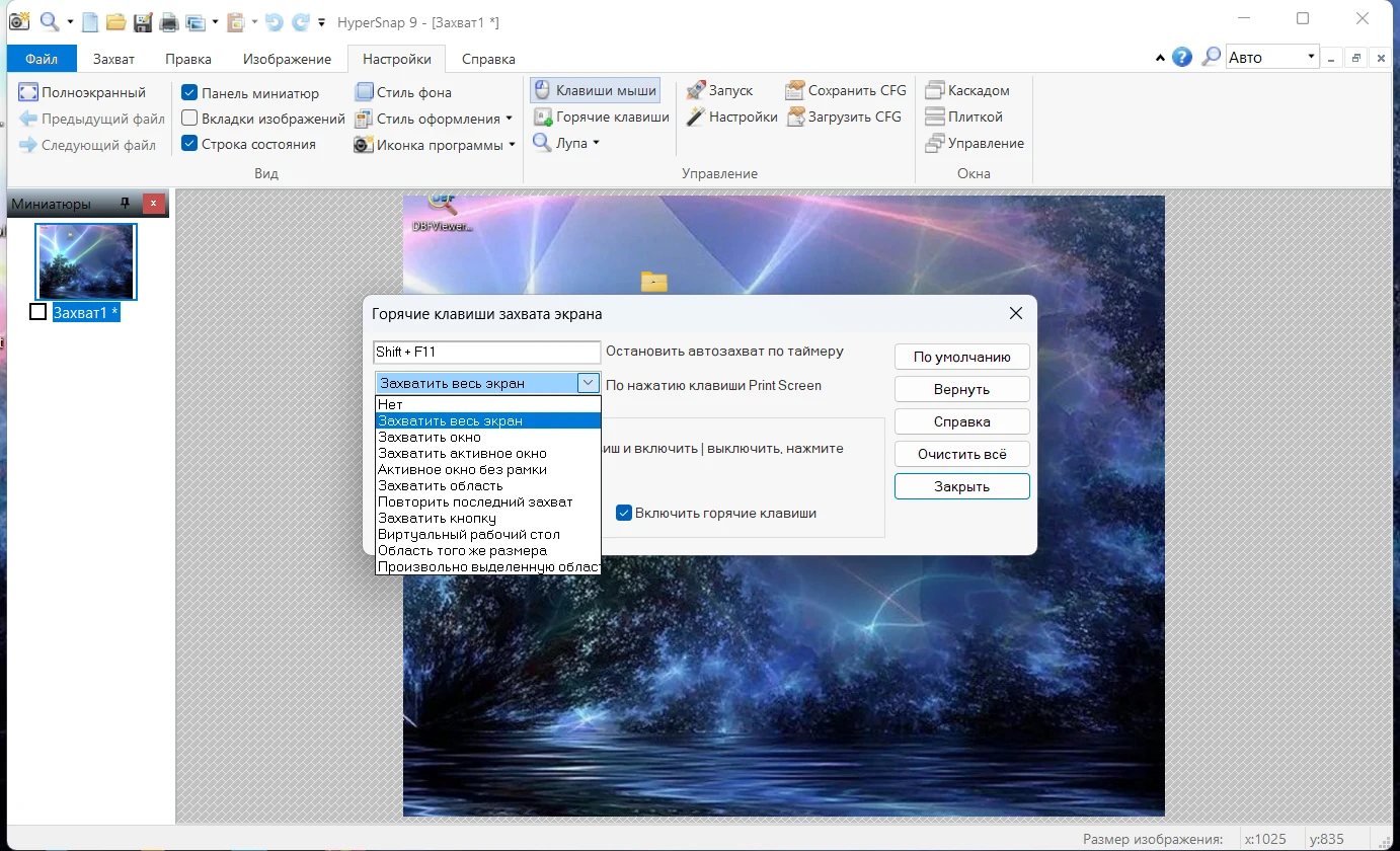 захват изображения при помощи горячих клавиш