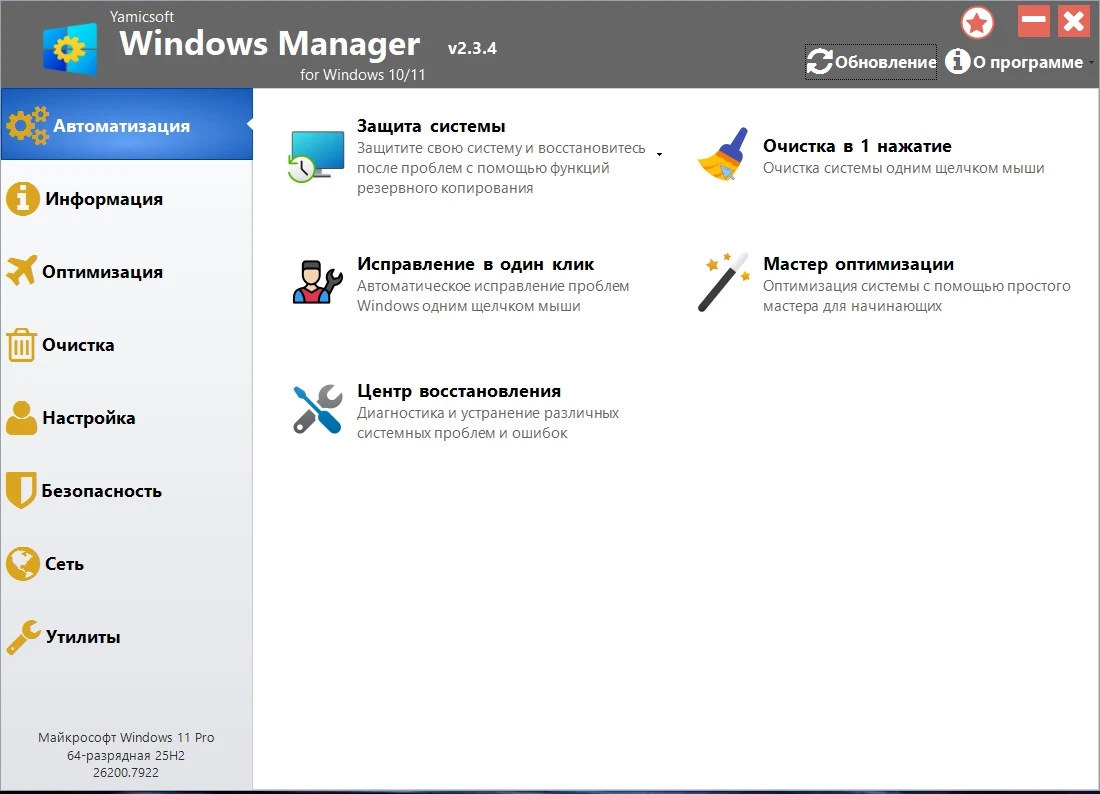 Комплексное решение для оптимизации, настройки, ремонта и очистки Windows 10/11.