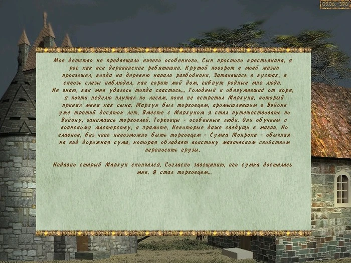 Действие игры происходит в мире фэнтези, населенном людьми, эльфами, гномами, нечистью и нежитью. Игровая вселенная очень большая – она состоит из множества отдельных миров. В каждом мире имеется несколько городов-государств, являющих собой замкнутые экономико-политические системы. Герой может переходить из мира в мир через пространственные врата – порталы. Основной деятельностью Героя является торговля – покупка товаров в одном городе и продажа или обмен в другом. Для этого у него есть особый предмет – Сумка Монрока, которая магическим образом позволяет переносить большое количество товара. Для того, чтобы получить значительную прибыль, придется совершать далекие и опасные переходы, искать выгодные торговые маршруты.