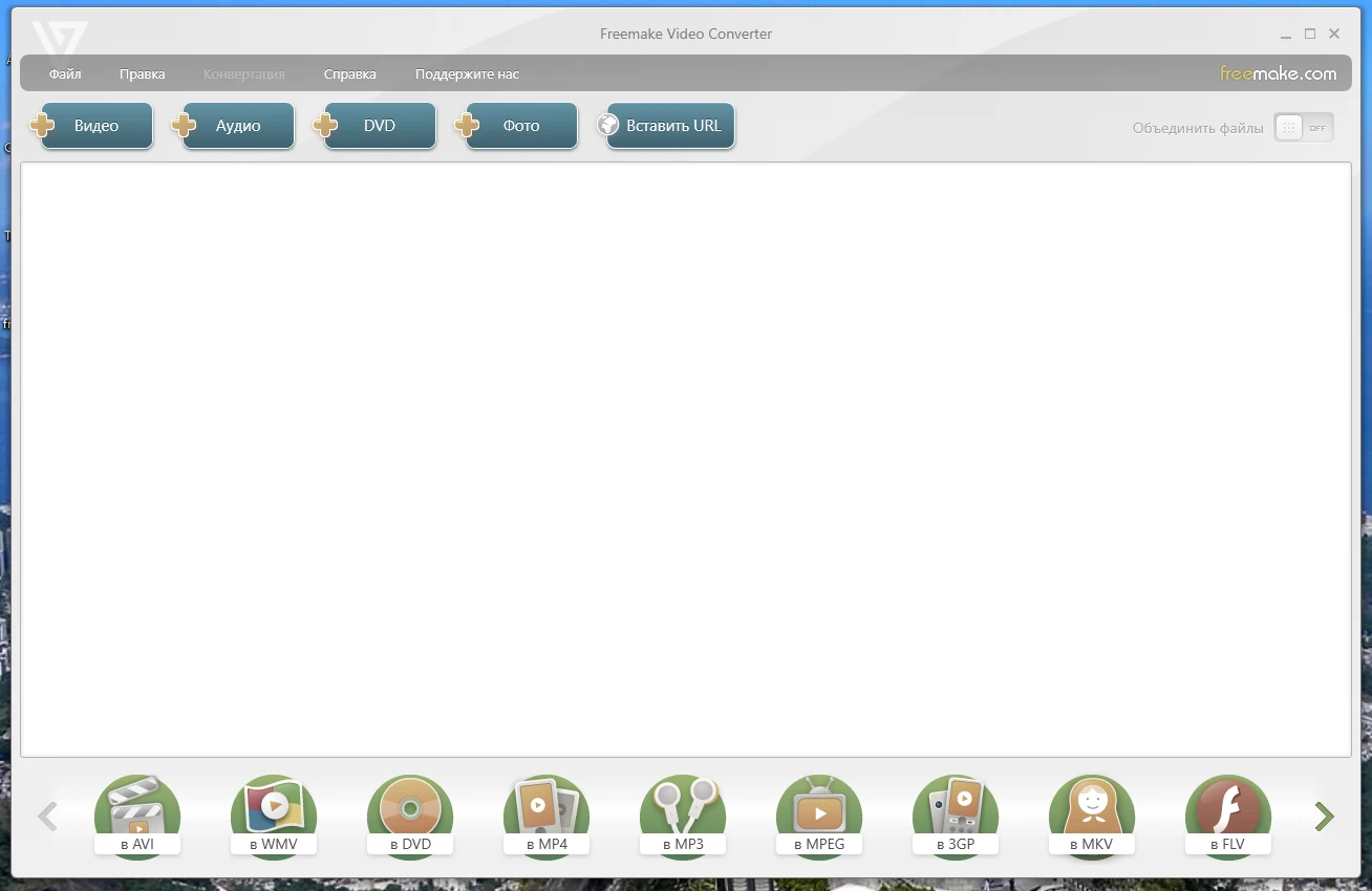 Freemake Video Converter может импортировать большинство популярных видео/аудио/графических форматов, и выводить их в AVI, MP4, WMV, Matroska, SWF, 3GP, DVD, Blu-Ray, MP3, осуществить видео поддержку для различных мультимедийных устройств, таких как IPod, iPhone, IPad, Xbox, Sony PlayStation, Blackberry, Android и других. Конвертер способен выполнить DVD прожиг, конвертирование видео/фотографий/музыки в DVD-видео.
