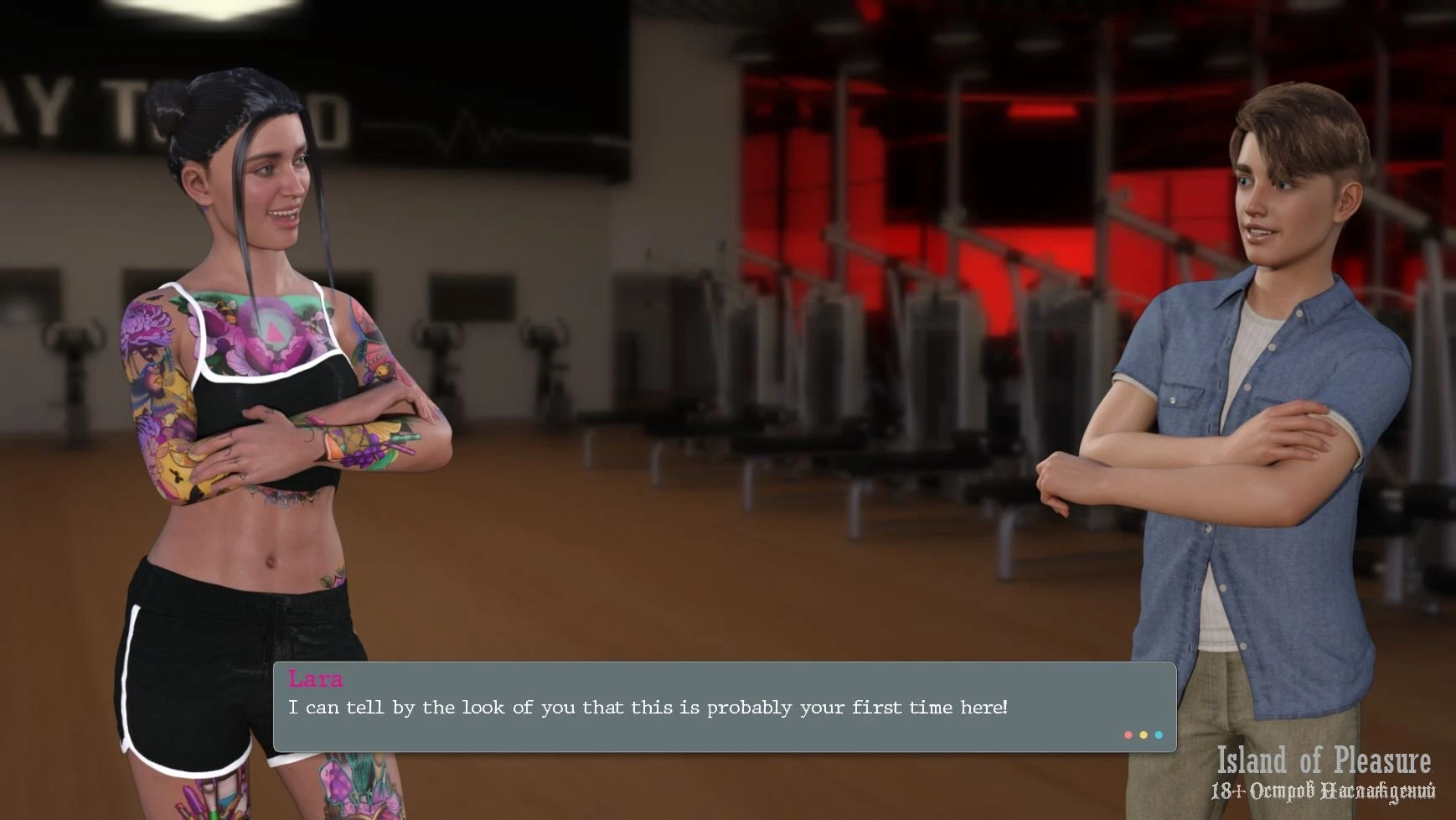 Updated the first scene with Lara at the gym. You now get the first workout for free.