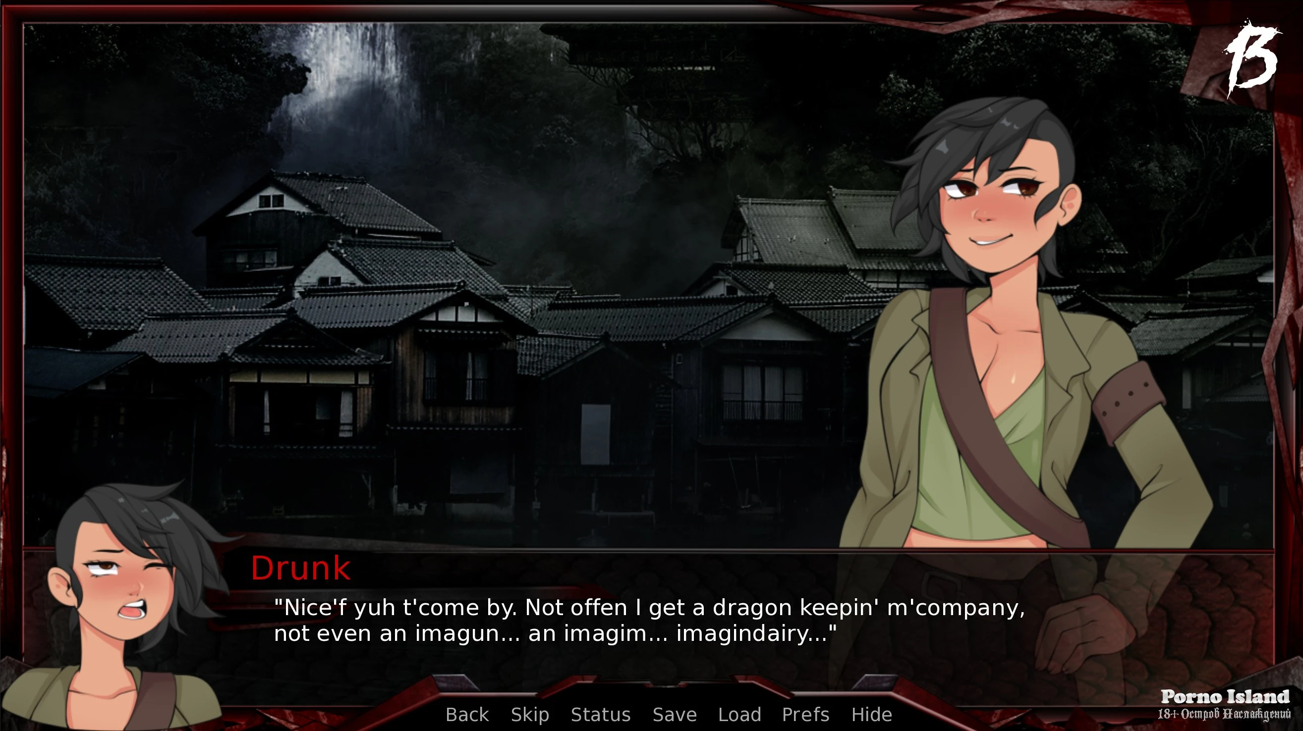 When drinking with Cooch and Darja, the dragon's drunken flashbacks will not include Chia if she has nothing to say.