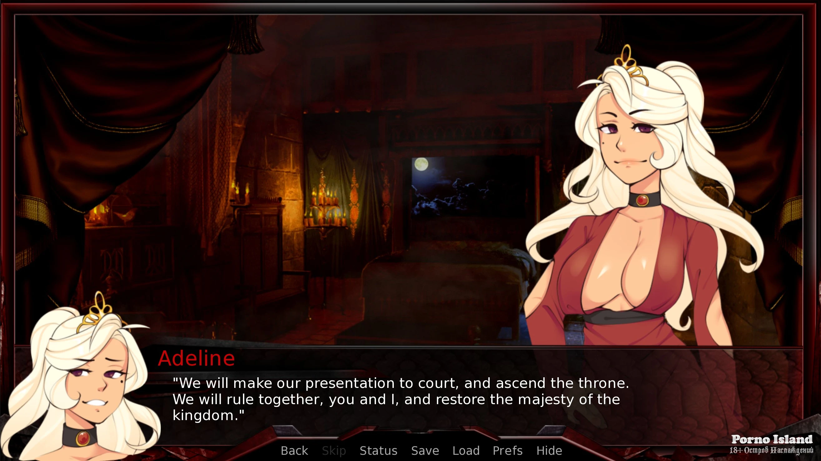Art: Messy main sprites for queenly Adeline (two variants).