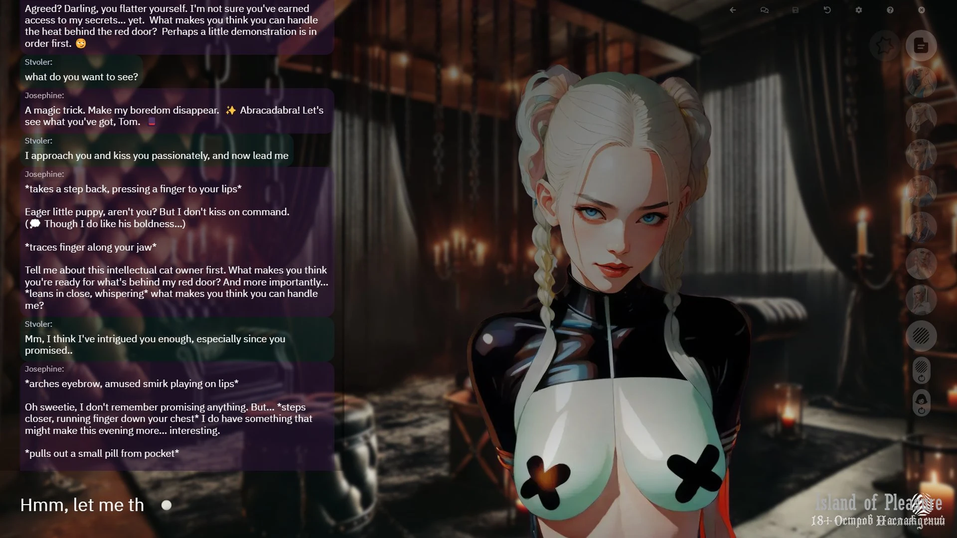 promptchan: до того как в игре появилась локальная модель использовал их для откровенного визуала к игре, по умолчанию выставлен стиль Illustration XL+ с фильтром Artsy 2, так же фильтр hyper хорош.
