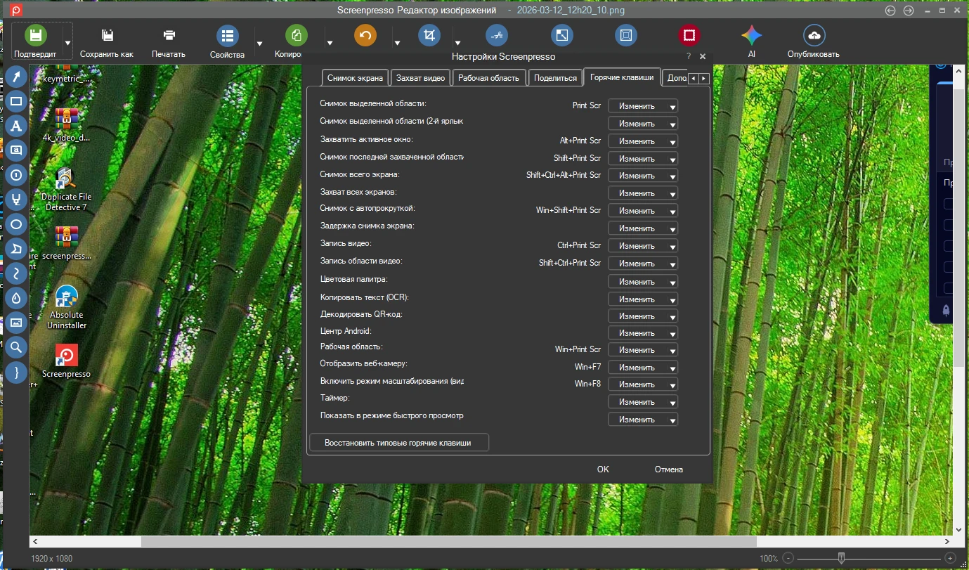 • Перетаскивание скриншотов мышью из Истории прямо в любую программу, работающую с изображениями или видео
