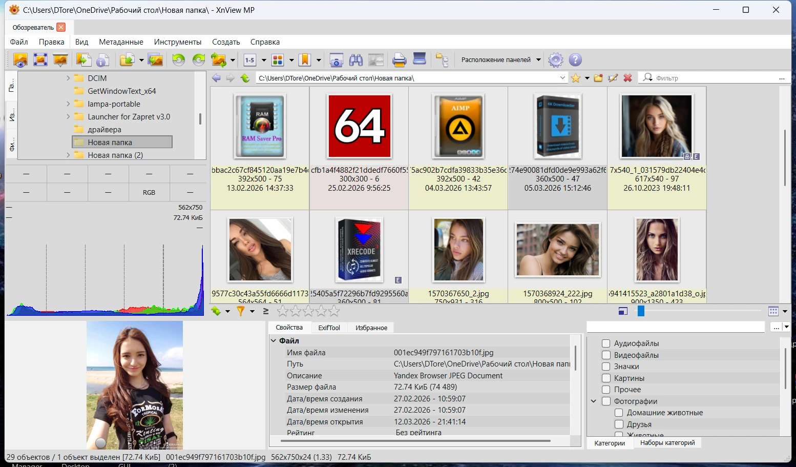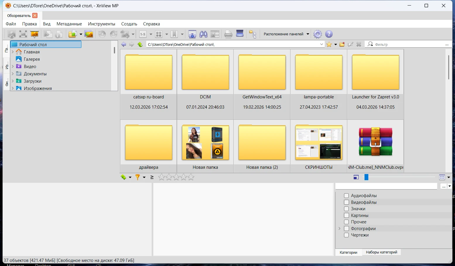XnView MP - мощное многофункциональное приложение для работы с графическими файлами, являющееся расширенной версией программы XnView. По сути этот инструмент может считаться своеобразным медиа-браузером с опциями просмотрщика, конвертера и каталогизатора. XnViewMP поддерживает просмотр более 500 различных графических форматов, а при сохранении (преобразовании) - до 50 форматов. XnViewMP может конвертировать картинки и фотографии в различные форматы, в том числе и в пакетном режиме, что удобно при работе с большими объемами данных, может просматривать и редактировать EXIF-информацию, делать скриншоты экрана, загружать данные на FTP-сервер, сайт или отправлять по электронной почте, упорядочивать графическую библиотеку по определенным параметрам и многое другое. Изображения можно обрезать, поворачивать, изменять размер, настраивать параметры яркости и контраста, применять различные эффекты и т. д. В общем, XnViewMP объединяет в себе возможности сразу нескольких программ по работе с файлами изображений, по принципу "все-в-одном" с удобным интерфейсом в стиле проводника Windows. Версия программы: v.1.10.5 Официальный сайт: XnSoft Язык интерфейса: Русский, Английский и другие Лечение: не требуется Системные требования:
