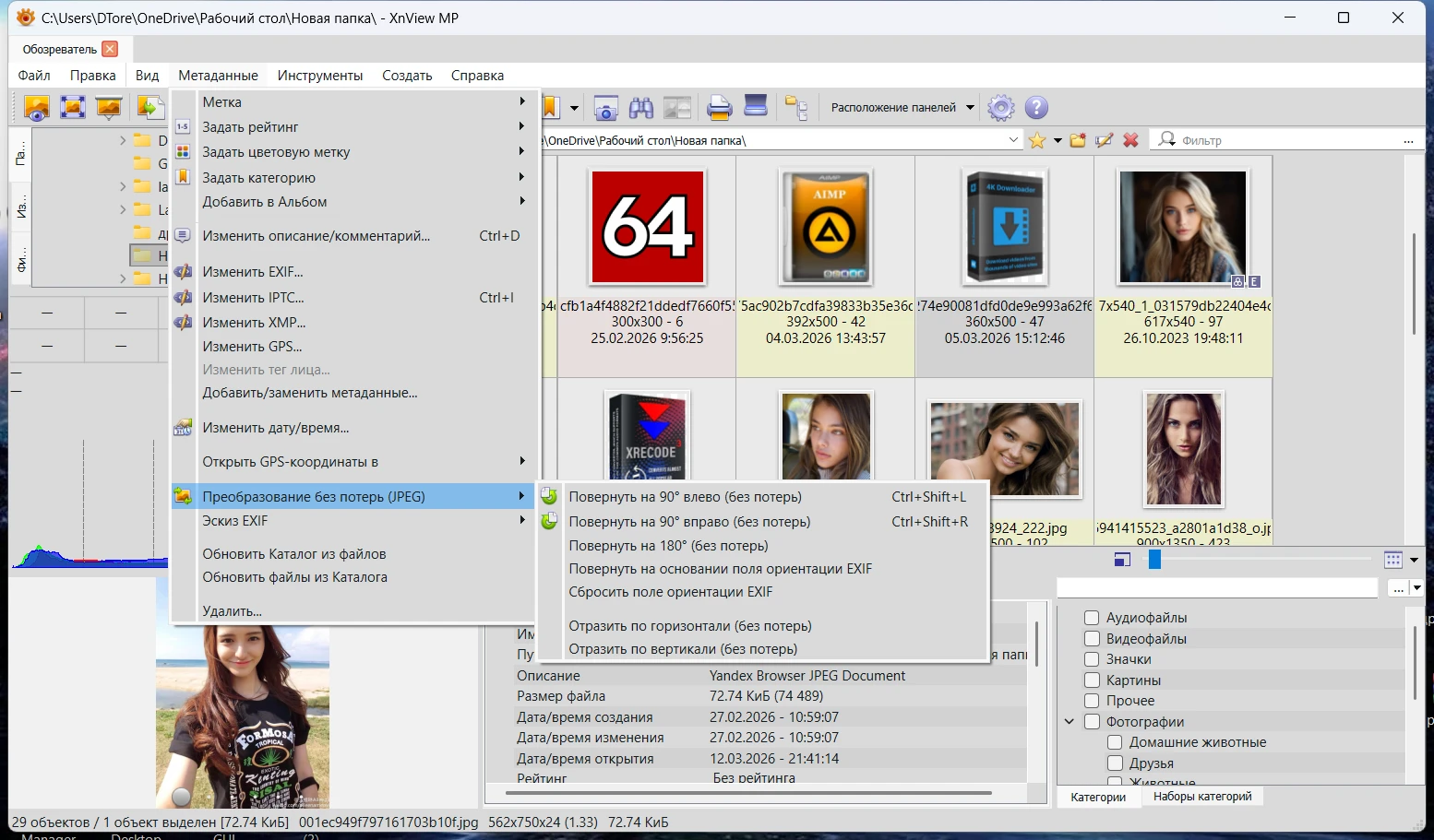 Редактирование и изменение EXIF-данных.