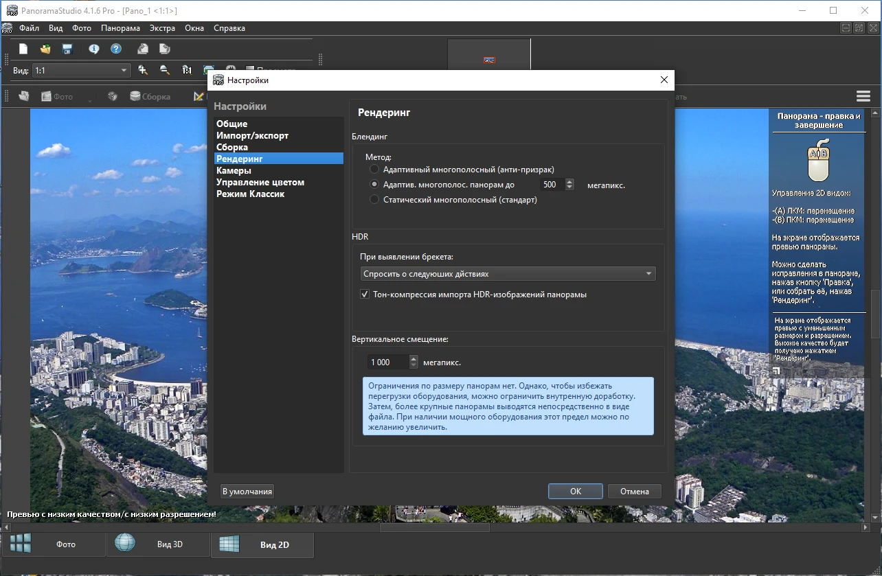 Ручные настройки пост-обработки всех шагов создания панорамы